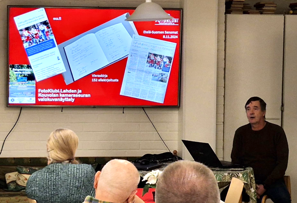 Vuoden viimeisessä kuvaillassa palattiin vielä kerran ”Kaupunkimme uusin silmin” -näyttelyyn. Remu näytti kuinka olimme saanut julkisuutta sekä Etelä-Suomen Sanomien verkkojulkaisussa että painetussakin lehdessä. Näyttelyn vieraskirjaan oli tullut 152 kuittausta ja tietenkään laheskään kaikki ei nimeään kirjaan laita joten mukava määrä kävijöitä oli ollut.