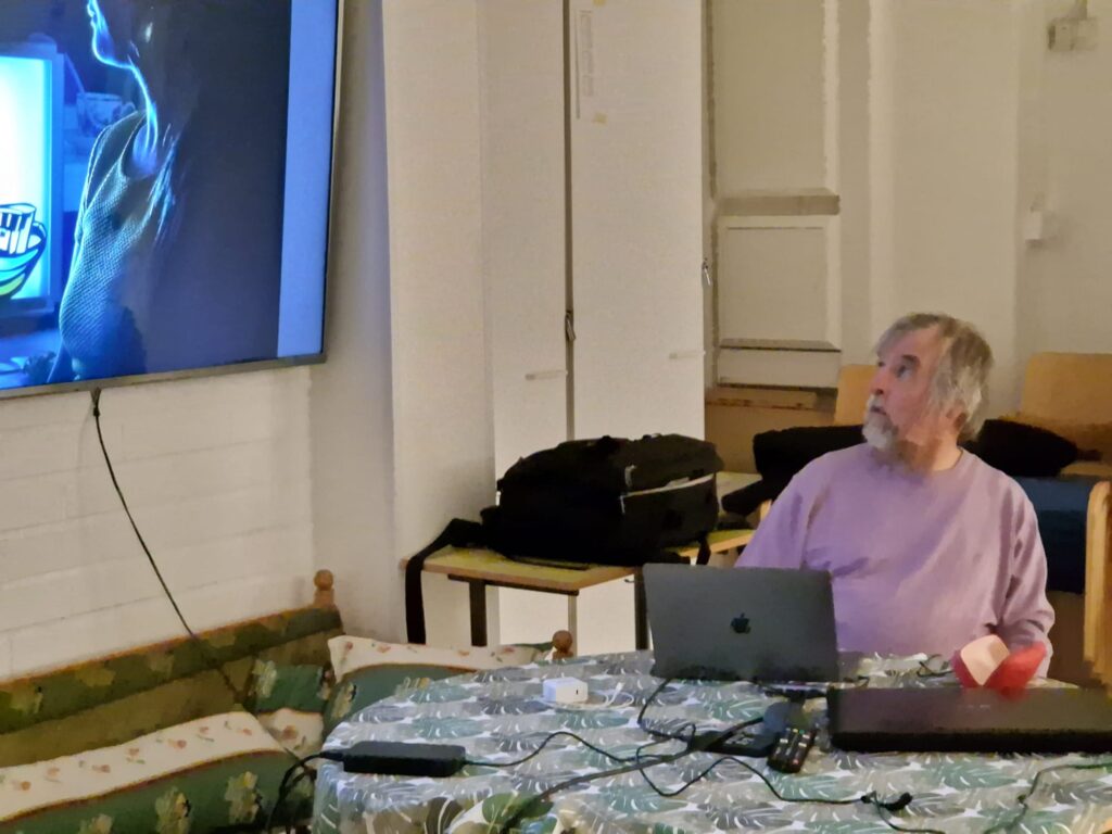 Tiistai-iltana meitä fotoklubilaisia oli kokoontunut pitkälti toistakymmentä henkilöä kuulemaan ensin klubin hallituksen terveisiä tulevasta toiminnasta. Tämän jälkeen valokuvaaja Kari Kuitunen (kuvassa) näytti ottamiaan kuvia. Isossa roolissa kuvissa oli käytetyt tekniikat joita Kari meille avasi. Hän haluaa kokeilla monenlaista kuvaustapaa varsinkin salamalla. Onneksi hän myös paljasti mitä kikkoja mihinkin kuvaan oli käytetty.
