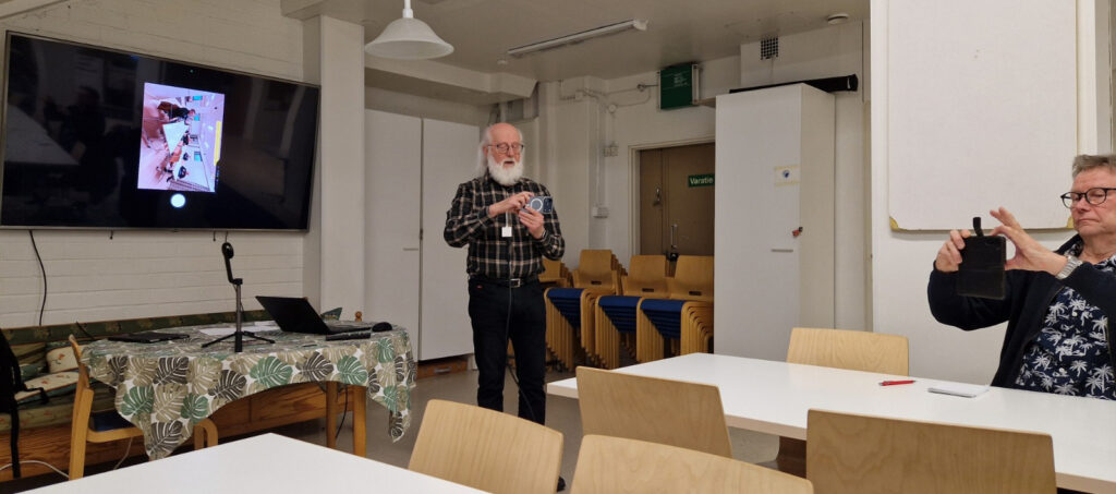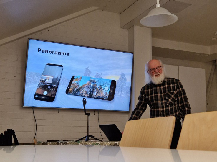 Jäsenemme Ari Saloranta veti tyhjentävän kurssin kännykkäkuvauksen saloista. Meitä oli paikalla kuusi oppilasta, joten saimme yksityiskohtaista opetusta. Jokainen meistä oppi puhelimestaan uusia toimintoja valokuvaukseen ja kuvankäsittelyyn liittyen.