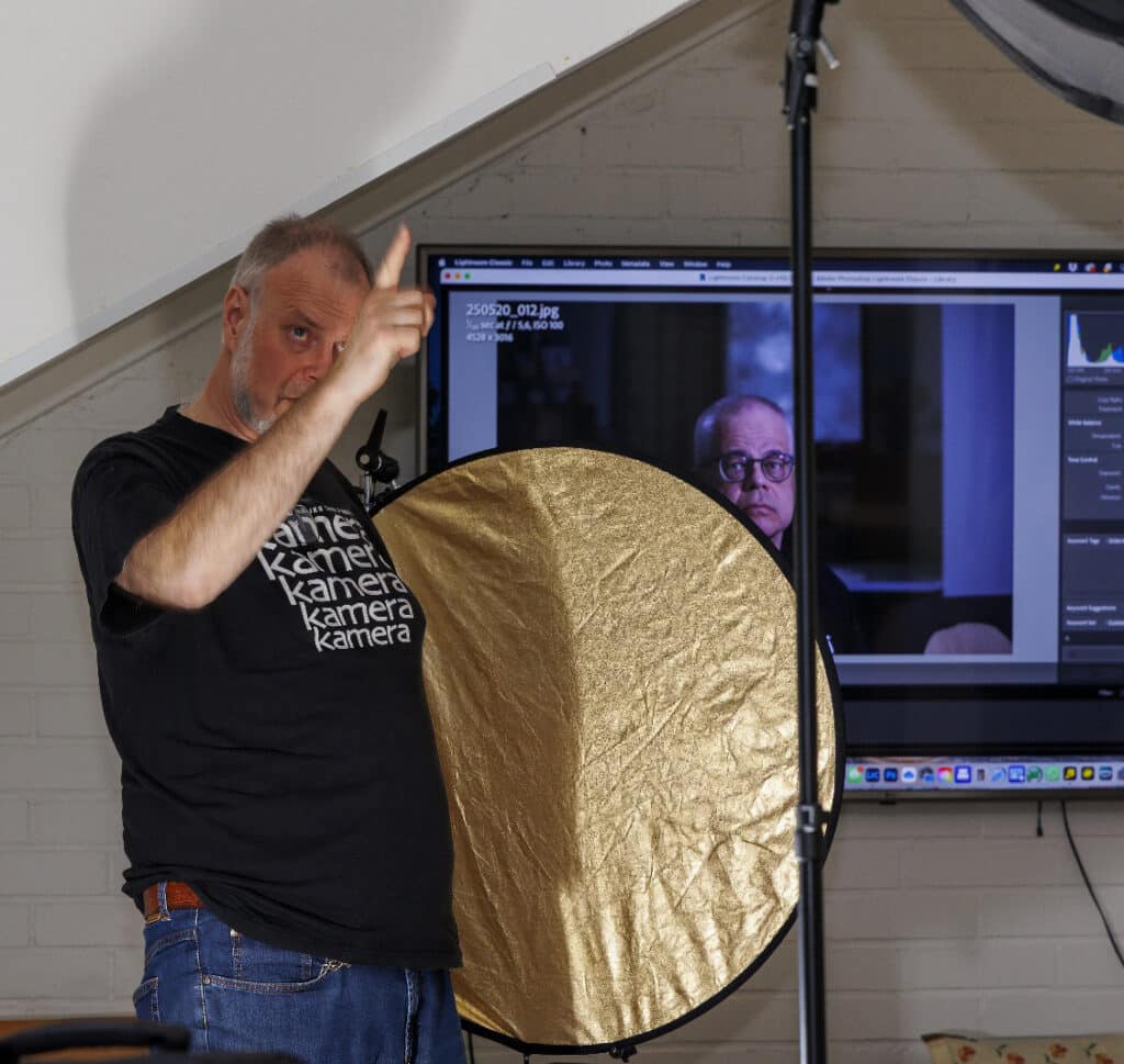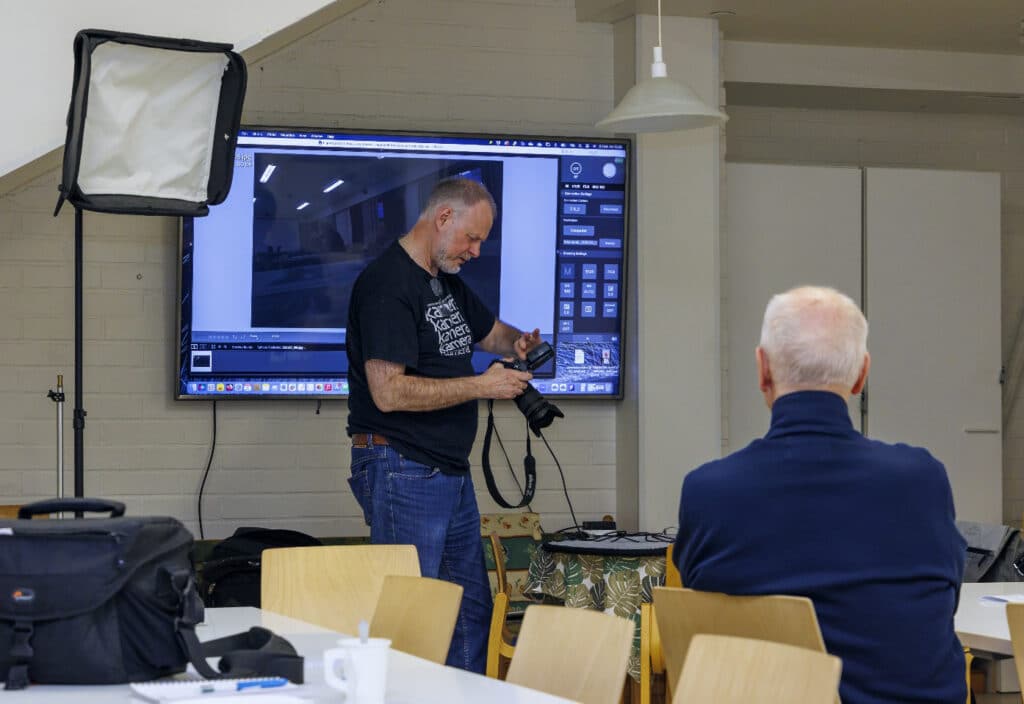 Käsisalamalla kotistudiossa luento herätti mielenkiintoa ja vilkasta keskustelua osallistujissa. Kävimme läpi kameran asetukset salaman kanssa sekä käytännön demonstraatioita mallin kuvauksessa. Käytimme monisalama kuvausta sekä heijastavan pinnan vaikutusta kuvan varjoihin sekä sävyihin värillisellä/valkoisella heijastimella.